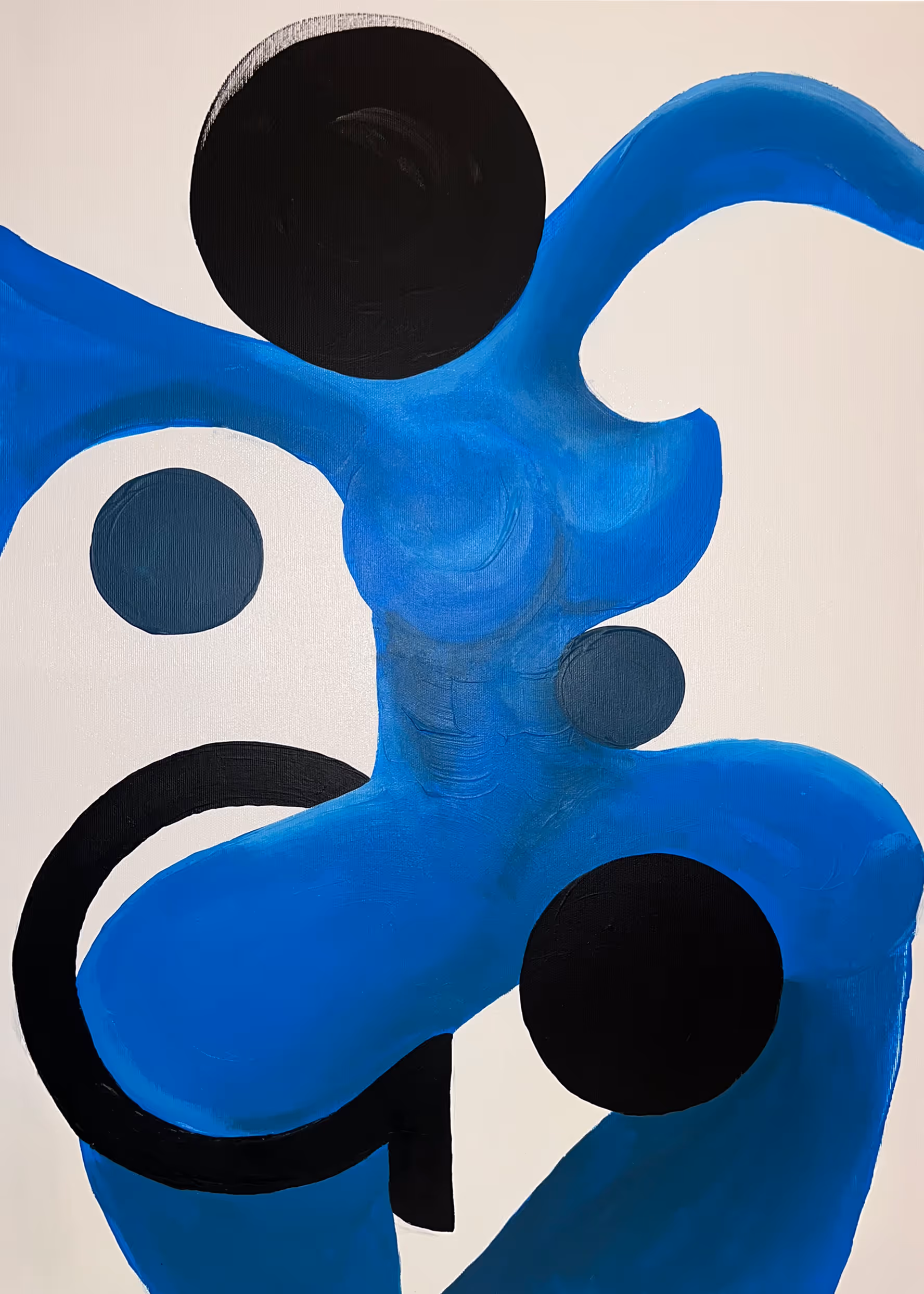 Una figura compatta si articola con segni geometrici, creando un dialogo diretto e stabile. L’opera esprime rigore e dinamica e riprende l’idea del logo aziendale commissionato. È la narrazione di un percorso vincente.